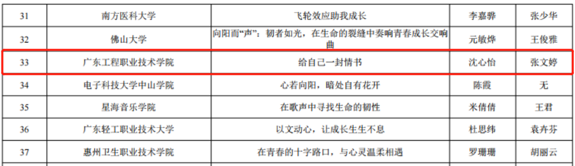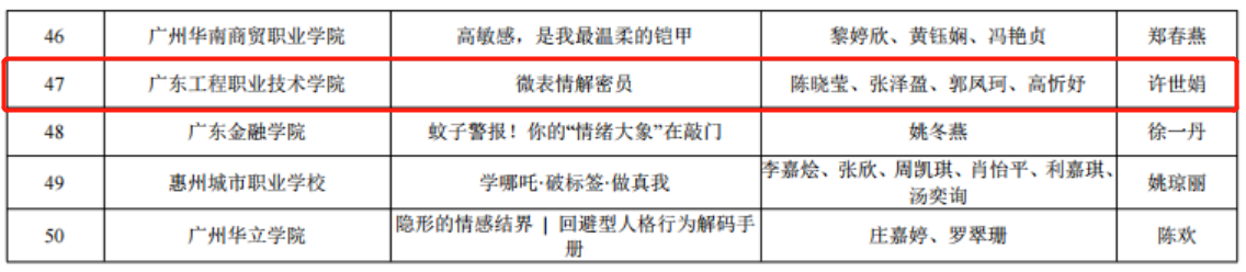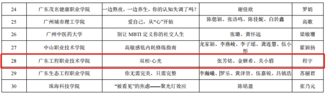 2025年10月26日,广东省教育厅公布2025年“5•25”大学生心理健康月系列活动结果,我校师生共斩获二等奖1项,三等奖2项。