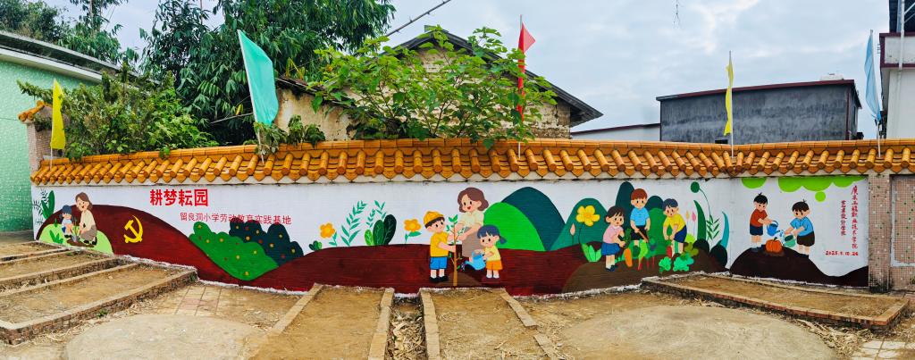 留良洞小学的校园里,师生们与该校师生共同构思主题、勾勒线条、调配色彩,将乡村自然风光、传统文化元素、校园生活场景等融入画作之中。经过师生们的三天的精心创作,单调墙面变为充满童趣与艺术气息的文化长廊,美化校园环境的同时,营造了浓厚的美育氛围。