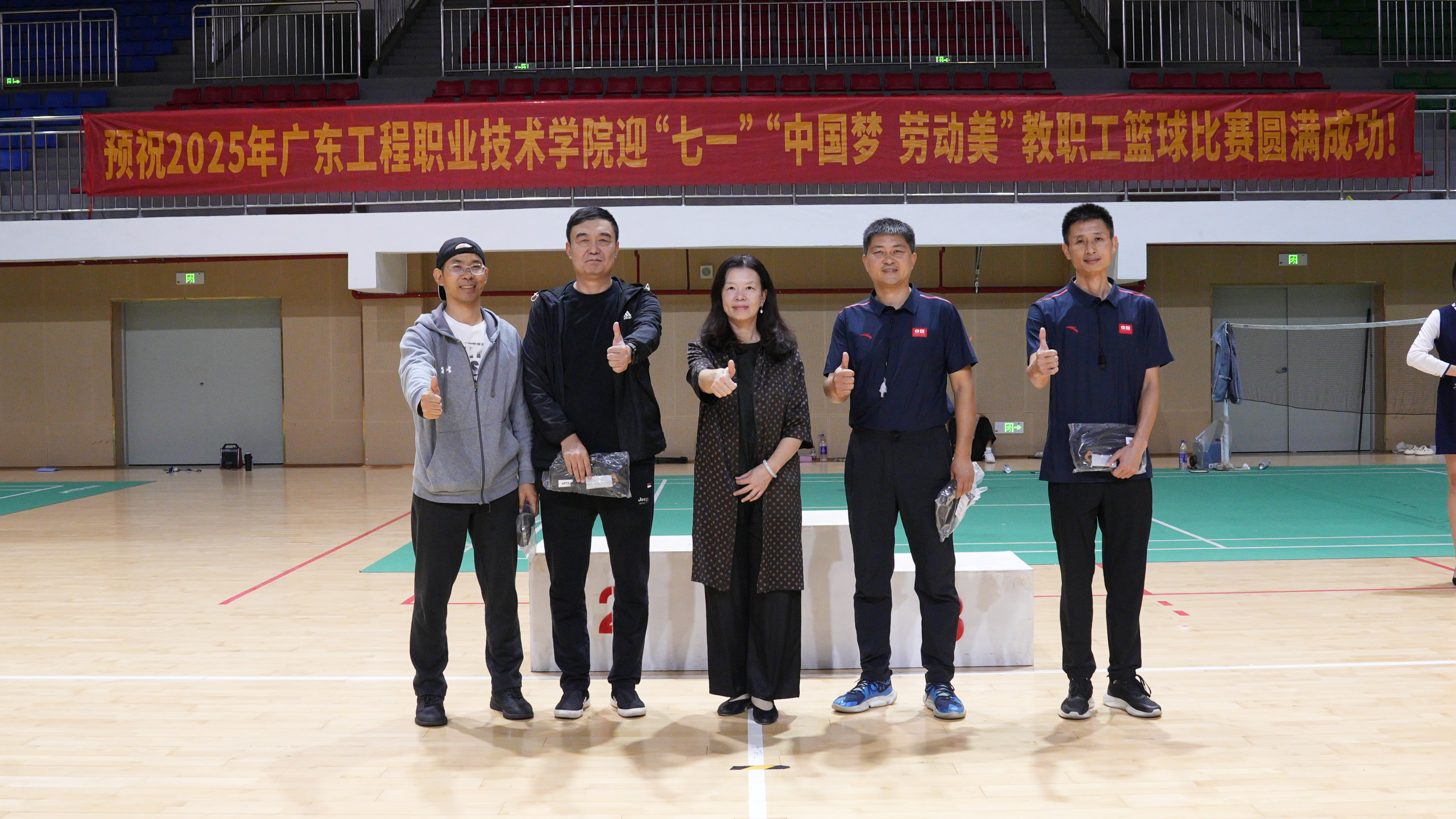 11月12日,由学校工会主办、体育健康学院协办的2025年“中国梦 劳动美”教职工篮球赛总决赛暨颁奖仪式在省职教城(清远)校区体育馆顺利举行。工会主席方燕、学校工会委员、体育健康学院领导及裁判员、运动员代表参加活动。