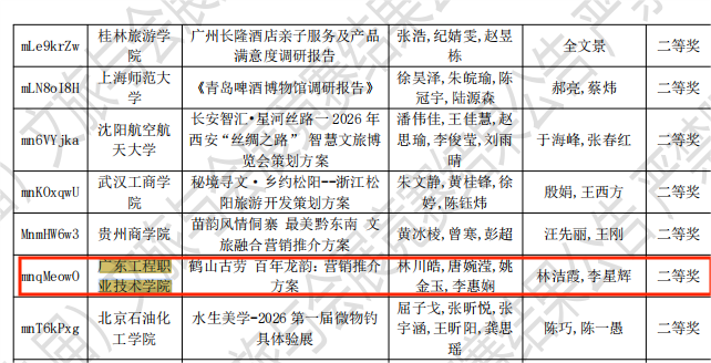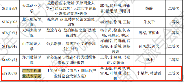 近日,2026年(新加坡)国际商务会展策划大赛中国地区选拔赛暨第十九届全国高校商业精英挑战赛文旅与会展创新创业实践竞赛全国总决赛圆满落幕。我校文化旅游学院会展策划与管理专业选派的三支参赛团队表现优异,共荣获全国二等奖两项、三等奖一项,充分展现了我校在会展教育及人才培养方面的扎实基础和成效。
