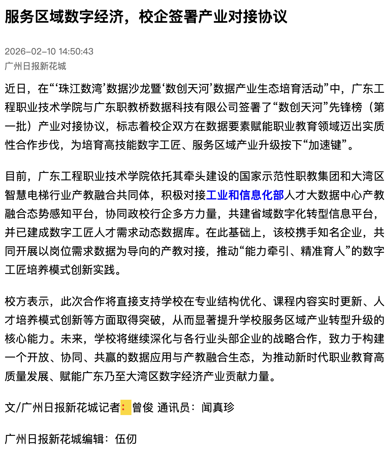 校方表示,此次合作将直接支持学校在专业结构优化、课程内容实时更新、人才培养模式创新等方面取得突破,从而显著提升学校服务区域产业转型升级的核心能力。未来,学校将继续深化与各行业头部企业的战略合作,致力于构建一个开放、协同、共赢的数据应用与产教融合生态,为推动新时代职业教育高质量发展、赋能广东乃至大湾区数字经济产业贡献力量。