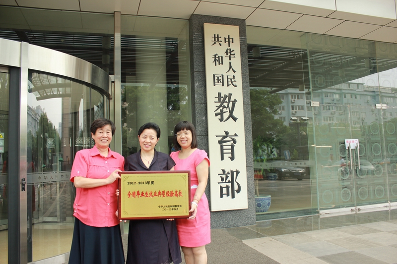 ■广东工程职业技术学院党委书记刘文清(中)参加全国毕业生就业典型经验高校座谈会并领奖。