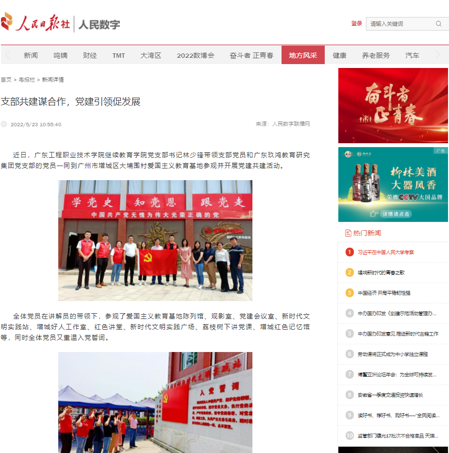 近日,广东工程职业技术学院继续教育学院党支部书记林少锋带领支部党员和广东玖鸿教育研究集团党支部的党员一同到广州市增城区大埔围村爱国主义教育基地参观并开展党建共建活动。