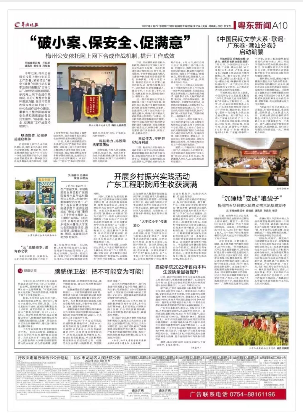 7月16日至21日,在广东省文联、羊城晚报报业集团和广东画院驻梅州五华龙村镇帮扶工作队、水南村村委等单位的支持下,广东工程职业技术学院财经学院11名师生组成的“德诚才精”暑假三下乡社会实践队(以下简称“实践队”)走进山村,开展为期6天的乡村振兴暑假大学生社会实践服务活动,通过调研、直播助农、支教、慰问、座谈等形式助力乡村振兴。