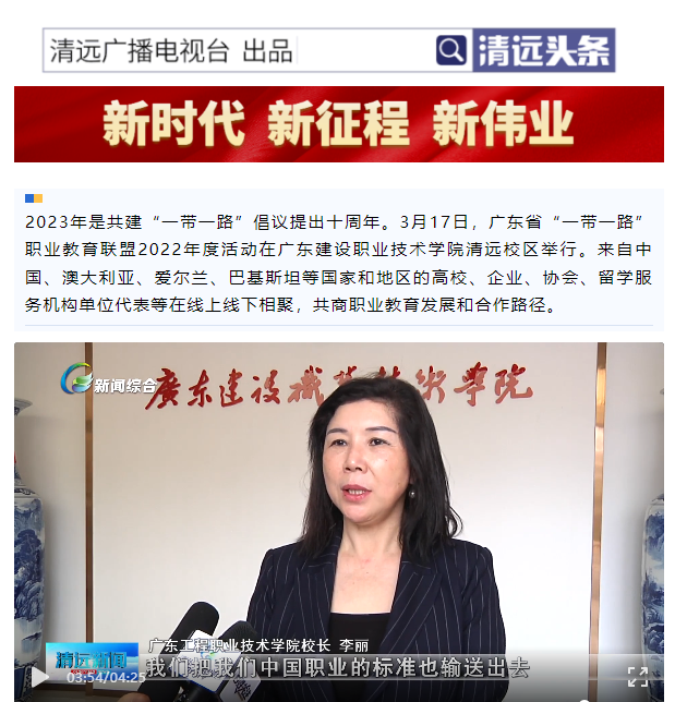 2023年是共建“一带一路”倡议提出十周年。3月17日,广东省“一带一路”职业教育联盟2022年度活动在广东建设职业技术学院清远校区举行。来自中国、澳大利亚、爱尔兰、巴基斯坦等国家和地区的高校、企业、协会、留学服务机构单位代表等在线上线下相聚,共商职业教育发展和合作路径。