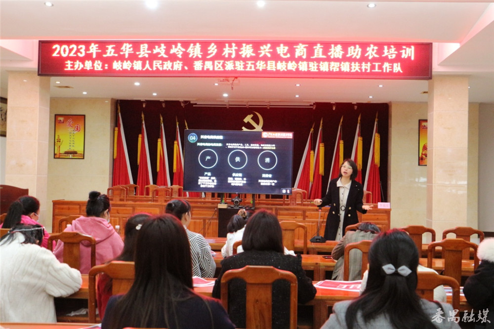 日前,五华县岐岭镇政府、番禺区派驻五华县岐岭镇工作队(以下简称番禺工作队)联合主办乡村振兴电商直播助农培训,岐岭镇40多名新农人、残疾人、脱贫户、退役军人参加。