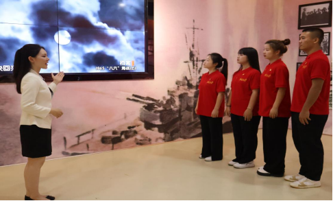 纪念馆人员李大邦为学生介绍李沛群同志的事迹