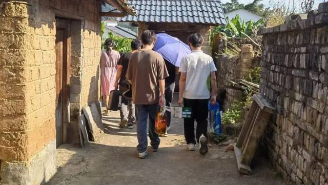 宣讲队伍一行还在村支书的引领下,宣讲队伍走访了恩村数户经济困难的家庭,了解他们的实际生活情况,为他们送去大米、食用油、牛奶等慰问品,受到村民的热情欢迎。同时,队伍也向经济困难学生的家长讲解国家助学贷款政策,帮助他们更好地完成学业。