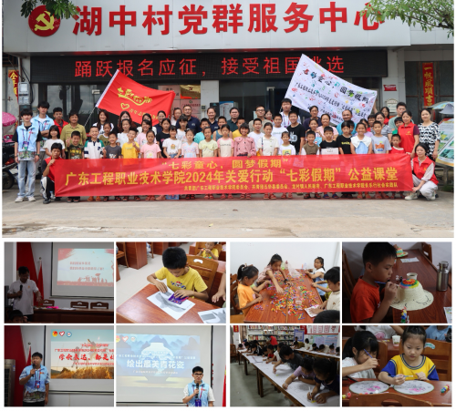 近日,广东工程职业技术学院长乐行社会实践队在团中央青年志愿者行动指导中心与中国青年志愿者协会秘书处的指导下,携着爱与希望,到龙村镇湖中村开展了为期16天的“七彩童心,圆梦假期”—2024年关爱行动“七彩假期”公益课堂,吸引了龙村镇湖中、三湖、塘湖三个村的近60名农村留守儿童、寄宿儿童、困境儿童等少年儿童群体参加,这不仅仅是一场知识的盛宴,更是一次心灵的触碰,让近60名农村儿童的世界,因他们的到来而绽放出斑斓的色彩。