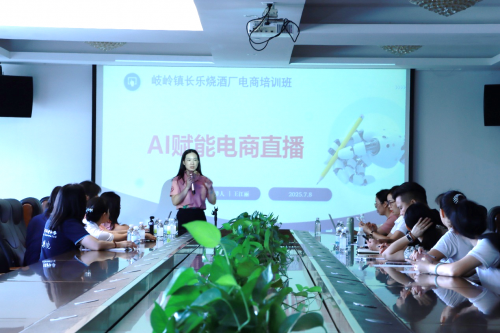 在岐岭镇广东省长乐烧酒业股份有限公司,实践队师生精心策划的电商培训班成为活动焦点。针对传统酒企数字化转型中 “直播流量少、转化效率低”等痛点,财经商贸学院教师王江丽和吴惠玲采用 “理论 + 实操” 结合的教学模式,将 AI 技术拆解为可落地的应用场景。培训中,王江丽老师现场讲解演示了AI 工具如何针对不同的消费人群和场景生成直播脚本,并为学员总结了一套直播话术框架流程,实践队员姚忆敏和金妍希更是现场化身带货主播,在直播间展示了公司产品的带货宣传。