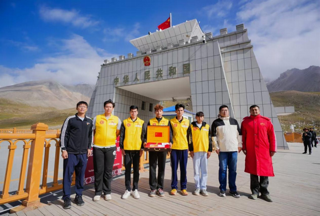 在红其拉甫口岸,当鲜艳的五星红旗冉冉升起之时,队员们捧着从天安门广场带回的国旗与国门同框,两面红旗在帕米尔高原的蓝天下同框,定格下“家国同心”的动人瞬间。
