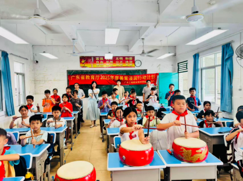 在国家美育政策与广东省“美育浸润行动计划”的指引下,广东工程职业技术学院美育教师团队于2025年9月18日至19日深入清远市浸潭镇,为浸潭镇中心小学、红星希望小学、浸潭镇大湾岗小学、浸潭镇第二初级中学等4所中小学送去精准化、沉浸式的美育帮扶,让艺术之光点亮乡村校园,让文化之根扎进孩子心田。