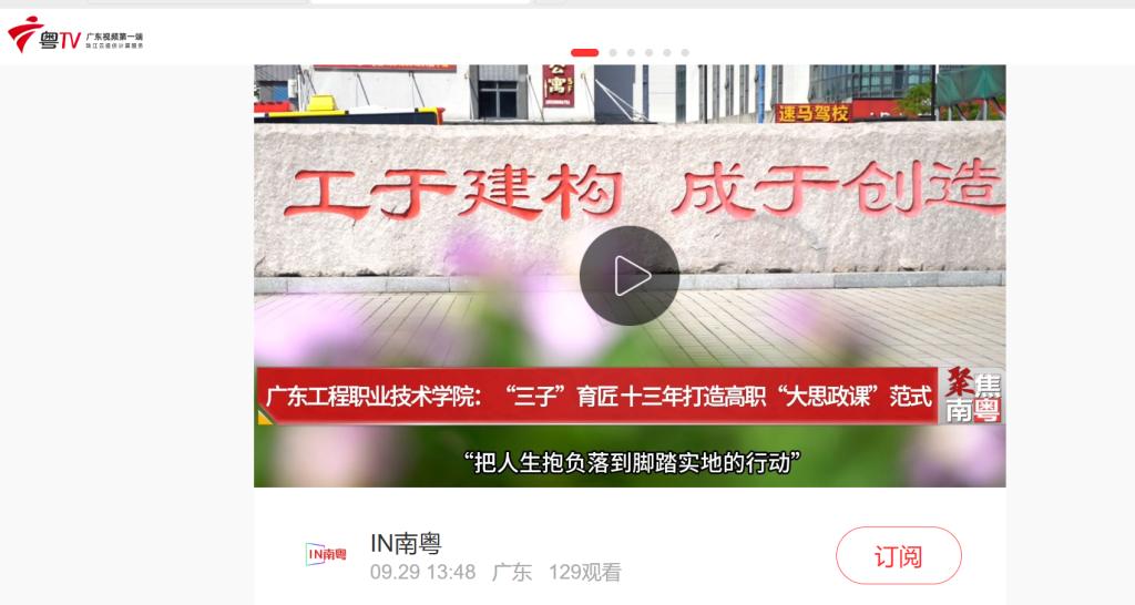 2025年9月29日《广东广播电视台》播出《广东工程职院:“三子”育匠 十三年打造高职“大思政”范式》,报道了我校大思政课与人才培养深度融合相关育人举措。