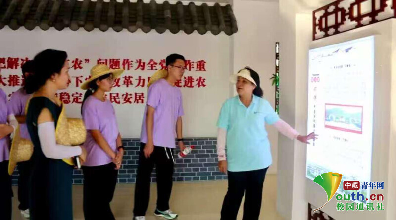 图为“AI豆智先锋队”团队在村史馆了解村的发展历程。宋悦供图