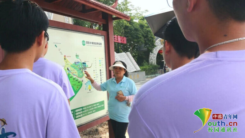 图为工作人员在介绍国医小镇中草药植物的分布情况。薛志铭供图