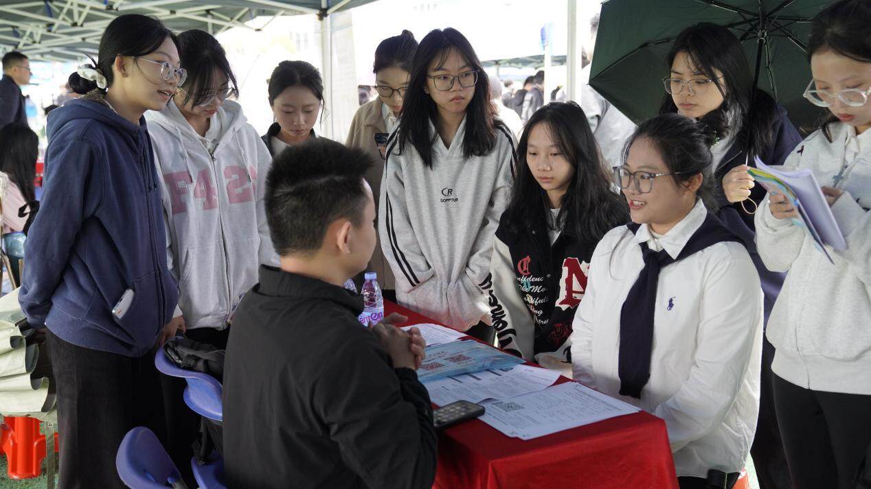 服务专区整合就业政策咨询、校企洽谈、大学生应征入伍、普通高校专升本等多元服务功能,提供“一站式”就业指导,切实提升求职实效。为满足近年来不断升温的升学需求,学校特邀17所开展专升本招生的本科院校到场设点,为有志深造的学生提供权威的答疑解惑与报考指导服务。