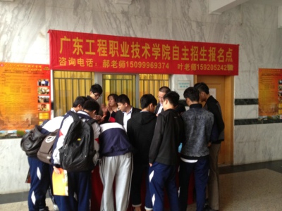 在各校的自主招生宣传会上,招生宣传工作人员介绍了我校的办学特色、办学成果、专业设置等基本情况,详细解读了我校2014年自主招生的特点、形式、报名办法、录取规则,并耐心回答了每位师生关心的问题。各中职学校领导和师生反应热烈,纷纷表示:广东工程职业技术学院是我省实力强、影响大、社会形象好的知名高职院校,自主招生为广大中职毕业生报考升学开辟了新途径。许多同学表示他们将珍惜这难得的机遇,踊跃报名,并积极准备考试。