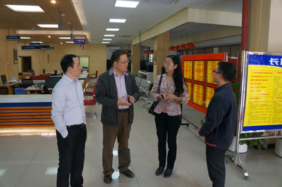 王主任对曾处长一行来访表示欢迎,随后他向来访客人介绍我校打造就业创业式文化校园基本情况以及建设构想等,黄沛峰老师介绍了我校大学生就业服务中心、创业体验园等场所的功能及使用情况。