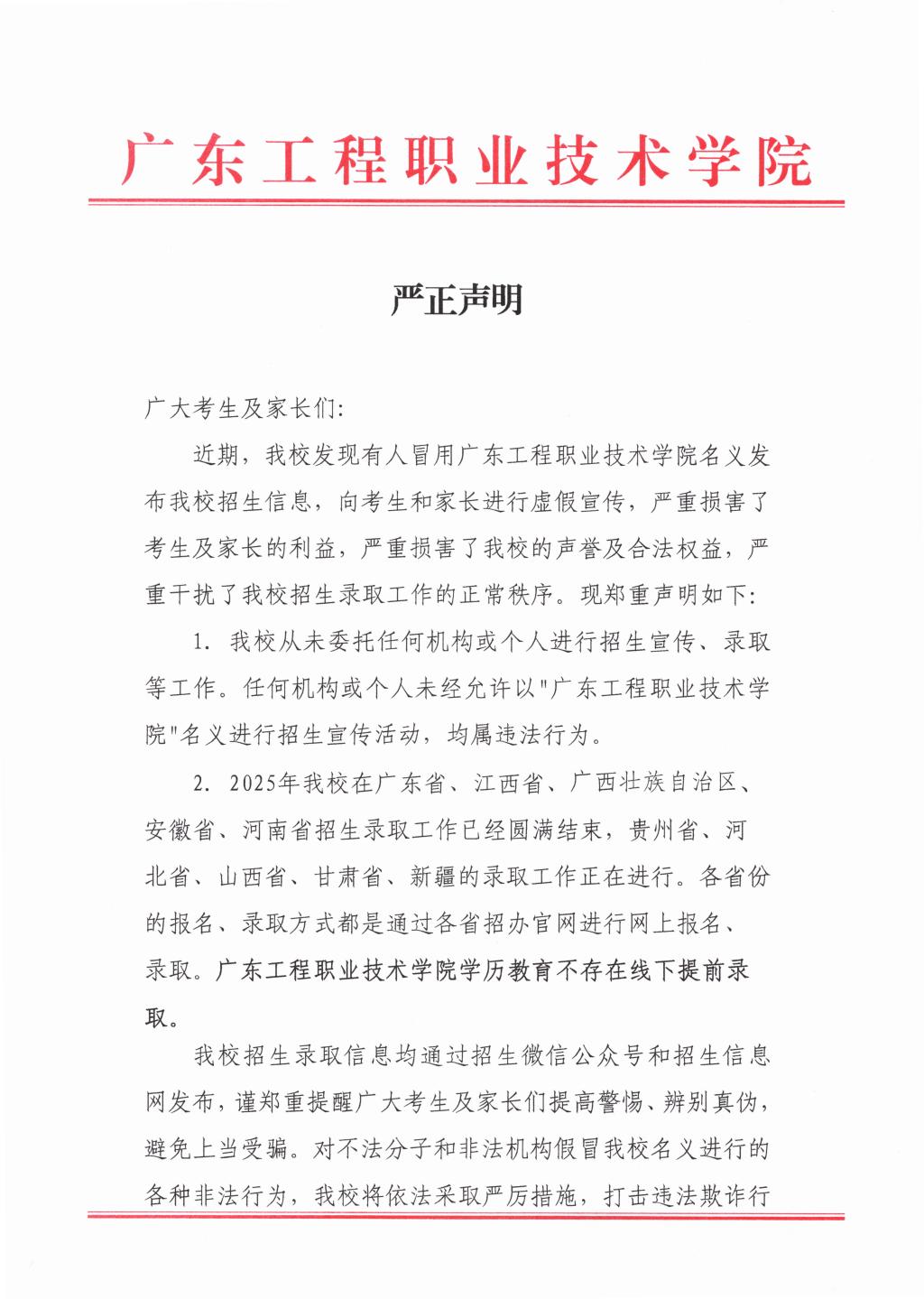 招生信息严正声明