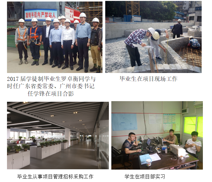 建筑工程技术专业是我校办学历史最悠久、知名校友最多的专业,办学特色鲜明,在全国有较大影响力,在广东省内相同专业中排名前列。本专业2009年被遴选为学校特色重点专业,2013年通过验收成为省重点专业,2013年入选广东省示范性高职院校重点示范专业(群)建设项目,并于2014年通过中央财政支持提升专业服务产业发展能力项目验收,2019年通过省示范校重点专业验收。生源学制包括普高3年制、专本衔接3年制、中高职衔接2年制及现代学徒制(3年制)、中外合作办学(“2+1”年制)等类型。