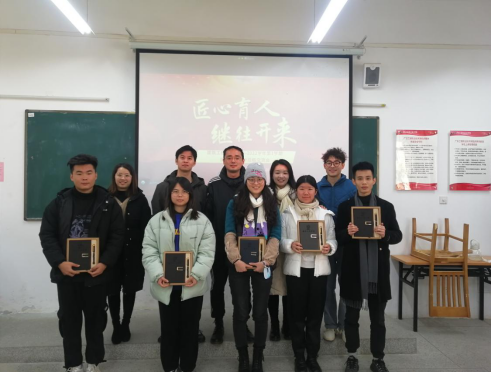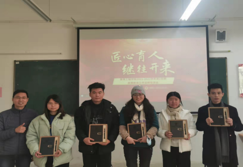 晋保山带领大家再次学习习近平总书记在党史学习教育大会的讲话精神,又通过讲述“六尺巷”的故事,希望同事们在日常工作和生活中要讲团结,讲格局。学院辅导员龙洁爽、万理、潘玢渠、何少云、向焚、龚雪雪、邓腾飞分别进行了汇报,分享其在2021年所取得的成绩、不足、改进措施以及2022年工作展望。全体兼职辅导员也谈了自己2021年下半年做学生工作的收获和感谢。为感谢兼职辅导员这一学期的辛勤付出,学院为大家颁发了纪念品。