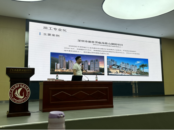杜超还结合深圳融湖盛世花园、广州华工国际校区、清远职教城等多个典型项目案例,生动展示了智能建造技术在实际工程中的落地效果,增强了学生对专业知识的直观理解与实践认知。