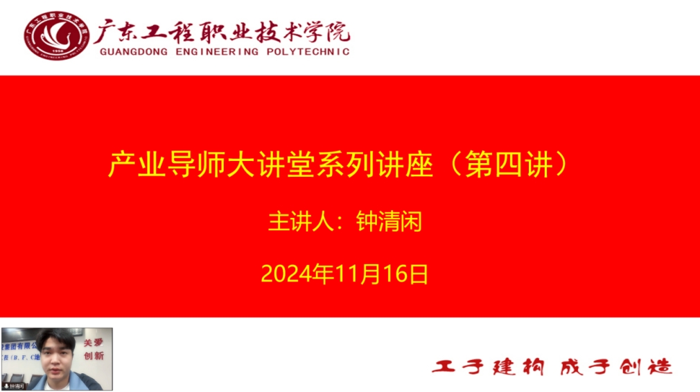 11月16日,为了助推学生学习技能、学习工匠精神,建筑工程学院通过线上形式举行了产业导师大讲堂系列讲座第四讲、第五讲,特邀请共青团全国十九大代表、全国技术能手、全国青年岗位能手钟清闲主讲。建筑工程学院相关专业300余学生参加了此次讲座。