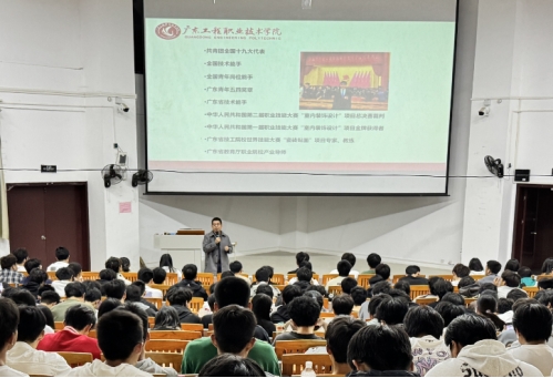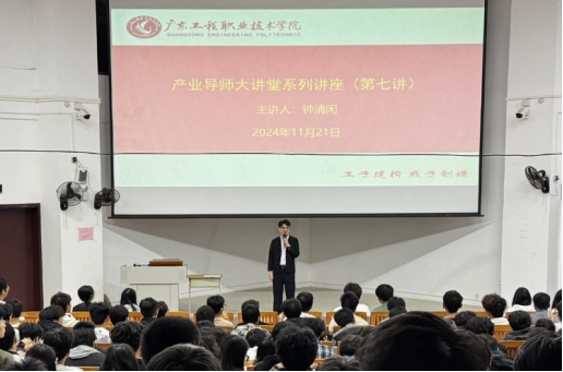 王洪波介绍了产业导师钟清闲凭借自己掌握的技能,走出了一条和绝大多数同龄人都不一样的“技能成才”之路,引导同学们大力弘扬劳模精神、劳动精神、工匠精神,坚定理想信念、迎难而上、勇攀高峰,走技能成才、技能报国之路。