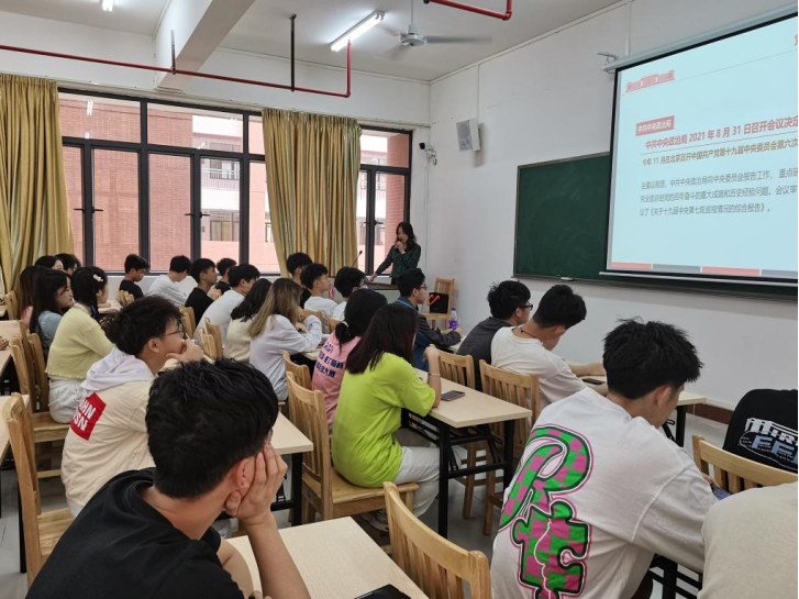 课上,钟婷向同学们着重阐述了十九届六中全会的召开背景与基本情况,回顾了十八大以来历届中央全会的主题,解读了十九届六中全会公报的内容。通过课堂学习,同学们进一步认识了党的百年奋斗重大成就和历史经验,进一步理解了党百年奋斗的初心使命,进一步树立了“学党史、知党恩、跟党走”的决心,进一步认识了以史为鉴、开创未来的历史使命和责任担当。同时,钟婷还勉励同学们要牢记习近平总书记对青年学子“不负青春、不负韶华、不负时代”的殷切希望,把人生理想同祖国和人民联系在一起。在国家大力发展职业教育的新时代,珍惜在学校的美好时光,不断加强专业知识的学习,练就过硬本领,提高专业技能,走好新时代的赶考之路。
