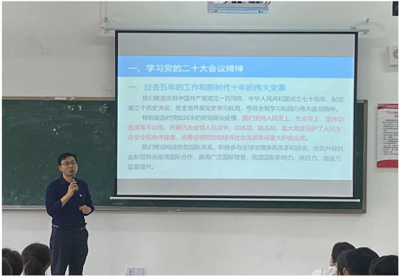 会上晋保山带领大家一起学习了党的二十大报告,主要宣讲了党和人民“面对突如其来的新冠肺炎疫情,我们坚持人民至上、生命至上,坚持动态清零不动摇,开展抗击疫情人民战争、总体战、阻击战,最大限度保护了人民生命安全和身体健康,统筹疫情防控和经济社会发展取得重大积极成果”。同时,他就近日清远市清城区疫情形势和防控政策要求做了详细讲解,勉励和要求大家要矢志不渝地坚持党和国家的疫情防控政策,作为一班之长,有责任有义务做好属地和学校疫情防控政策的宣传,勇于担当抗疫重任,为营造安全健康和谐的校园做出自己应有的贡献。