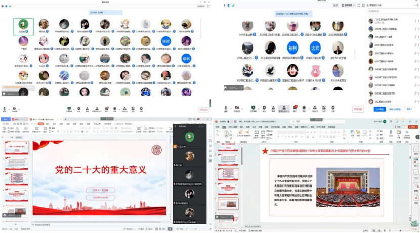 为深入学习宣传贯彻党的二十大精神,引导广大青年学子坚定不移听党话、跟党走,立志做有理想、敢担当、能吃苦、肯奋斗的新时代好青年,2022年12月8日-9日,建筑工程学院全体辅导员通过腾讯会议方式分别就各自所带班级组织召开了党的二十大精神专题宣讲会,学院各年级学生集体参会。