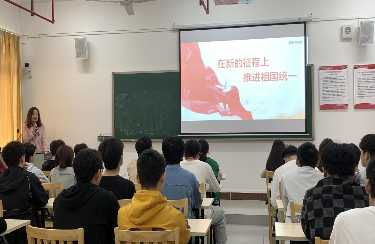 钟婷围绕“在新的征程上推进祖国统一”主题,从习近平总书记在党的二十大报告中提出的“解决台湾问题是中国人自己的事,要由中国人来决定”开始讲述中国共产党为实现祖国统一而接续奋斗的光辉历程,强调实现祖国完全统一是中华民族伟大复兴的必然要求,祖国完全统一的历史任务一定能实现!她鼓励同学们作为国家新时代青年,是建设祖国的中坚力量,一定要信念坚定,自觉抵制一切不良言论,不负韶华,成为祖国统一的坚实力量。