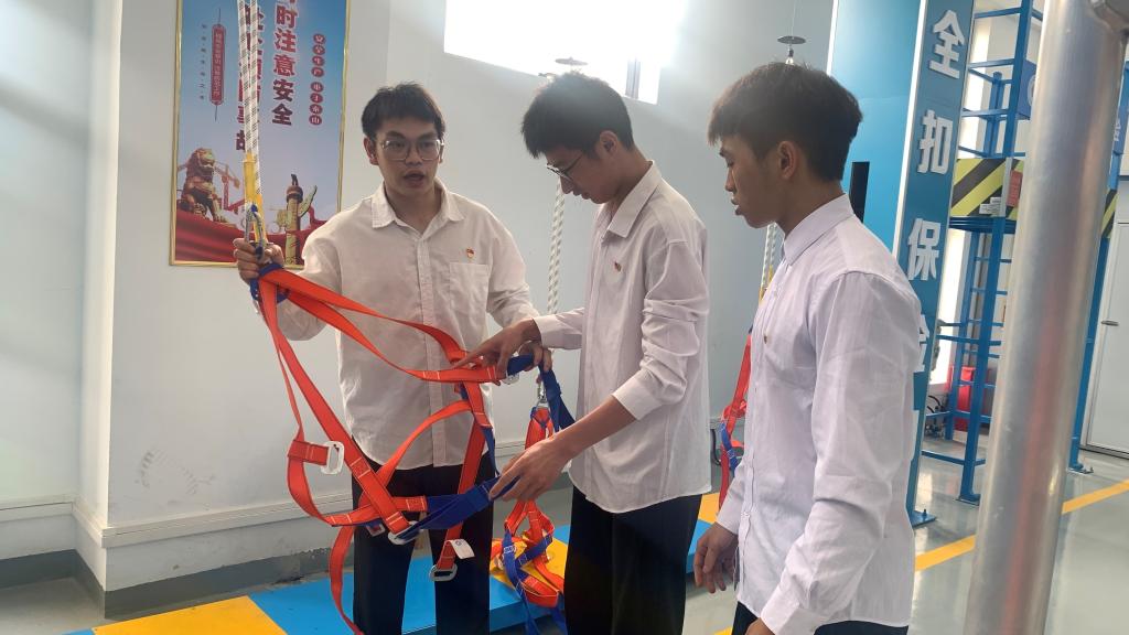 工程造价专业老师王泽讲述了施工作业安全注意事项知识,从安全帽的作用、安全绳的用法以及消防灭火的使用方式等三个方面给同学们科普在实操作业施工时需要注意的地方以及存在的安全风险隐患。