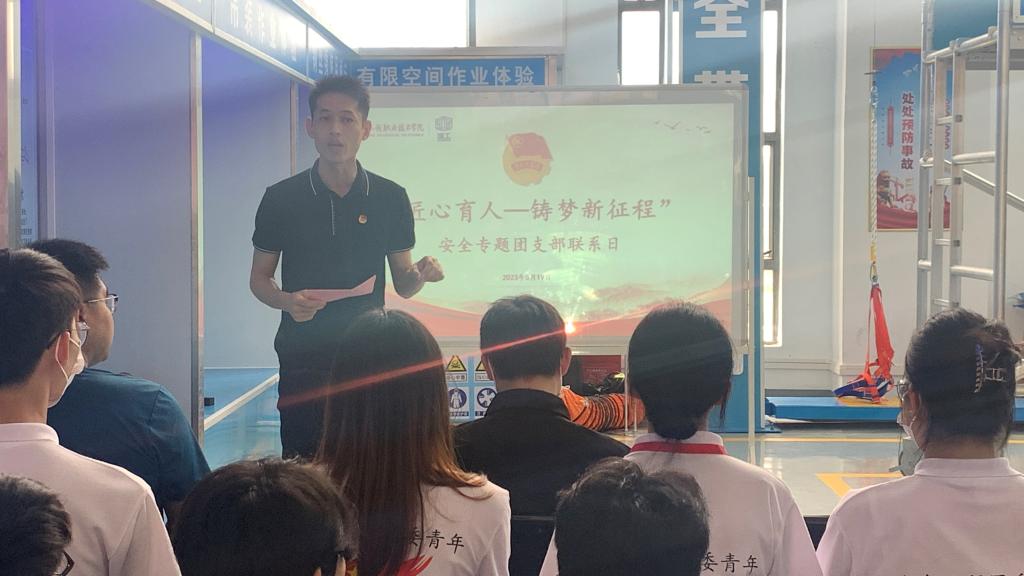 为全面深入抓好学生在建筑作业时的施工安全管理和教育,进一步增强同学们的安全防范意识,提高对危害安全行为的警惕,建筑工程学院(以下简称“学院”)团委于2023年5月19日中午在Q6-104实训室开展了“匠心育人—铸梦新征程”安全教育专题团支部联系日活动,校团委老师何晓丰、学院工程造价专业老师王泽、学院团委书记向焚、校团委基础团务部代表、学院团委学生干部及2022级建筑工程技术(中外合作办学)A班全体学生参加了本次活动。