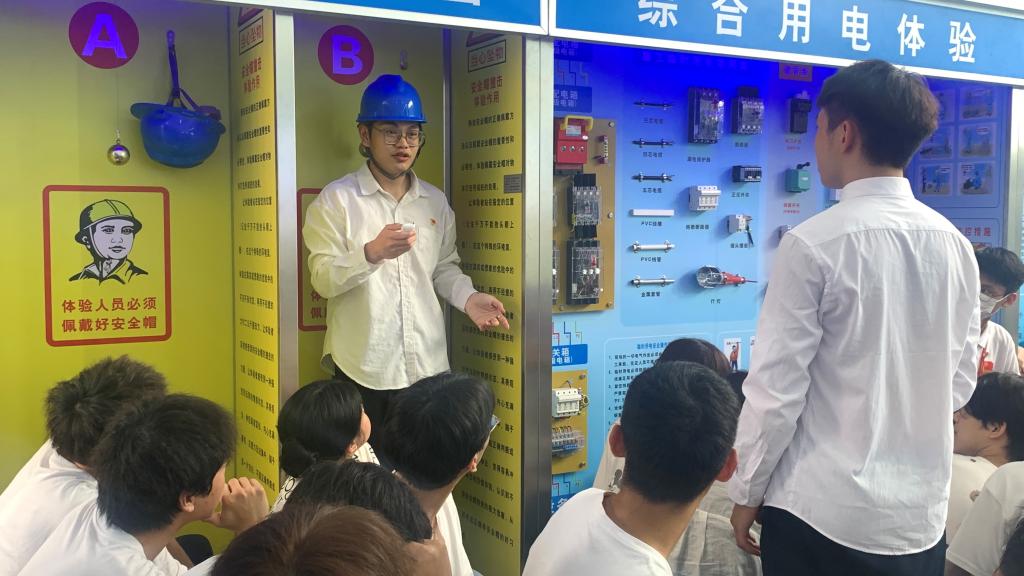 随后,由学院团委学生团务副书记梁国辉同学分享关于安全帽撞击,护栏倾倒体验等一系列注意事项经验,进一步提高同学们对于施工作业的安全意识。