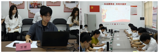 在会上,学生第二党支部书记万理首先带领全体党员学习了习近平总书记在二十届中央政治局第六次集体学习时的重要讲话“开辟马克思主义中国化时代化新境界”。他在会上强调:全体党员要深刻领会习近平总书记的讲话内容,坚持马克思主义这个立党立国、兴党兴国之本不动摇,在落实主题教育的学习过程中做到“两个结合”,尽己所能地将中华民族的伟大精神和丰富智慧更深层次地注入马克思主义,有效把马克思主义思想精髓同中华优秀传统文化精华贯通起来,聚变为指导实践的理论优势,与时俱进地提高自身的思想理论武装。
