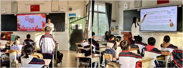 紧接着,匠心宣讲队学生党员代表进行爱国主义精神教育,他们通过刘胡兰、邱少云、黄继光等爱国主义英雄人物为线索,生动地介绍他们的非凡生平,以英雄人物叙事传扬爱国奉献精神,以伟大事迹分享凝聚同心向党力量。在互动问答的环节中,孩子们积极参与提问,踊跃回答问题,在得到小奖品的同时也巩固孩子们在本次爱国主义精神宣讲活动中的所思所获。