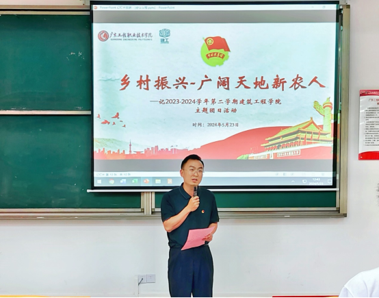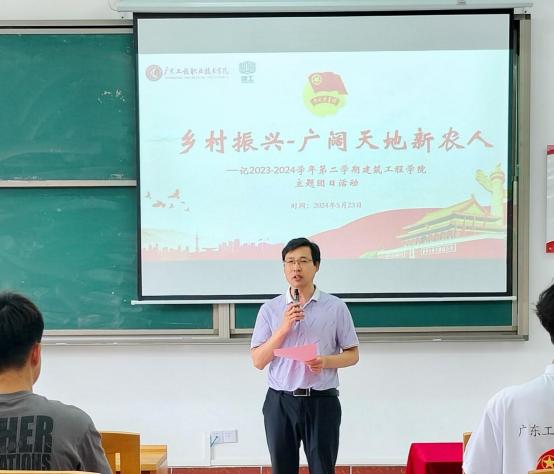 为加深同学们对乡村振兴战略的理解,激发他们投身新农村建设的热情,提升学校、学院团委对基层团支部的指导与联系,建筑工程学院(以下简称学院)于5月23日在教学楼Q1-121举办以“乡村振兴—广阔天地新农人”为主题的团日活动。校团委副书记黄澄、学院党委副书记晋保山、学院团委书记向焚、校团委学生干部代表、学院团委学生干部、干事及2023级建筑设计D班(团支部)全体学生齐聚一堂,共同参加了这场别开生面的主题团日活动。