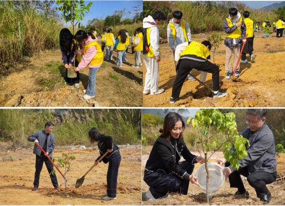 春风拂绿催新象,植树造林正当时。2025年3月19日,建筑工程学院党委与党建共建单位中共东城街道新桥总支部委员会(简称“新桥党总支”),中共清远市文化广电旅游体育局第二支部委员会(简称“机关二支部”)携手开展植树活动,以实际行动践行生态文明理念,为乡村振兴添绿赋能。