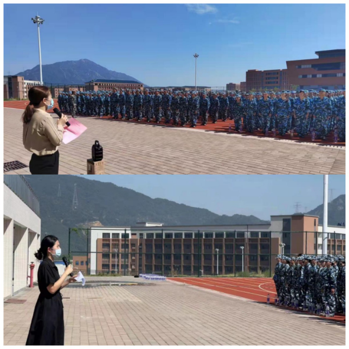 来到训练场,钟婷首先代表学院对各位教官近日以来的悉心教导和辛勤付出表示感谢,同时肯定了同学们这段时间以来的军训成果,她对在场新生提出几点希望和要求:一是要克服疲劳,克服困难,严格要求自己,高质量、高标准完成军训任务;二是要尊重教官、遵守纪律、刻苦训练、服从教官命令,听从教官指挥;三是要团结协作、共同进步,在军训中培养集体荣誉感,为接下来的学习生活奠定坚实的基础;四是希望同学们在接下来的军训汇演中能够脱颖而出,展现建工学子的青春风采。随后,新生辅导员代表龙洁爽就军训期间的注意事项对同学们进行了温馨提醒,一是在训练期间做好防晒,补充水分;二是要听从教官安排,不得无故缺席、迟到,注意安全。