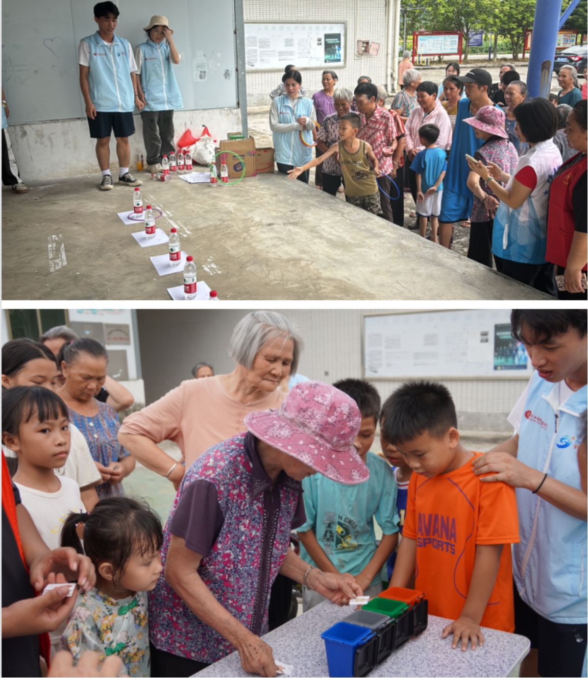 为进一步推动乡村美化工程,增强村民环保意识,实践铸青春突击队通过寓教于乐的小游戏开展环保宣传活动,介绍了垃圾分类的重要性、分类标准及投放方法,通过趣味问答的方式,以及分类投发“垃圾”小卡片的形式,并设置小奖品,激发村民的参与热情,加深他们对垃圾分类知识的理解和记忆,切实提高村民的环保理念,促进乡村垃圾分类行动落地。