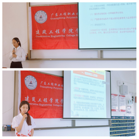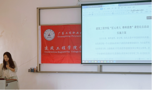 在主持人陈钰琳的宣布下,广东工程职业技术学院建筑工程学院“匠心育人 尊师重教”大学生课堂礼仪暨“三风”建设培训会正式开幕。大会第一项议程全体师生观看视频廉洁教育视频:《对,是纪律!》,该视频展示了我党党规党纪的建设历程,纪律和作风建设始终置于我党重要地位,也让全体师生进一步了解到“三风建设”的重要性。