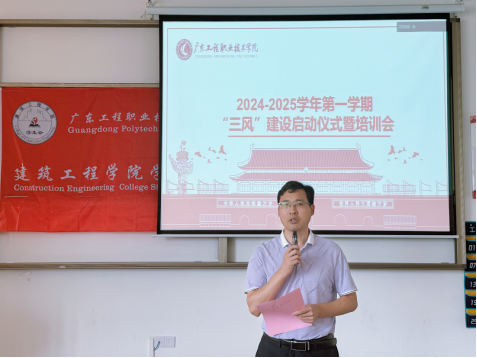 2024-2025学年第一学期建筑工程学院“匠心育人 尊师重教”大学生课堂礼仪暨“三风”建设培训会在清远校区教学楼1-121举行。参加本次大会的有建筑工程学院党委副书记晋保山,全体辅导员以及2023、2024级班长、副班长和生活委员。