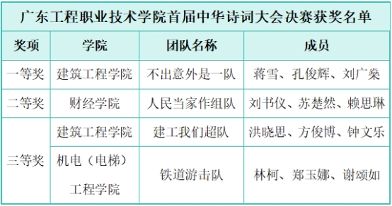 经过三轮激烈的比拼,最终,建筑工程学院“不出意外是一队”凭借优秀的表现荣获一等奖,财经学院“人民当家作组队”获得二等奖,建筑工程学院“建工我们超队”和机电(电梯)工程学院“铁道游击队队”获得三等奖。