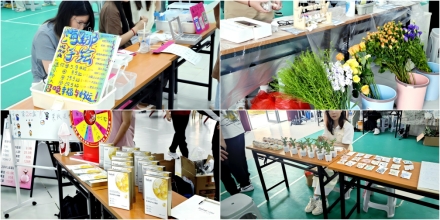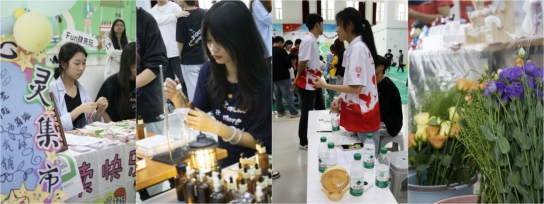 活动现场,一个个独具巧思的摊位整齐有序地排列着,各类精致的商品令人目不暇接:非遗漆扇折射千年匠心,手作香薰氤氲着调香师的巧思,永生花艺凝固春日韶光,更有"旧书新生"专区的知识漂流令人驻足。同学们化身“小老板”,热情地叫卖着自己的宝贝。他们精心布置的摊位、色彩鲜艳的招牌、俏皮可爱的标语即便藏身在熙熙攘攘的人群之中也格外引人瞩目。