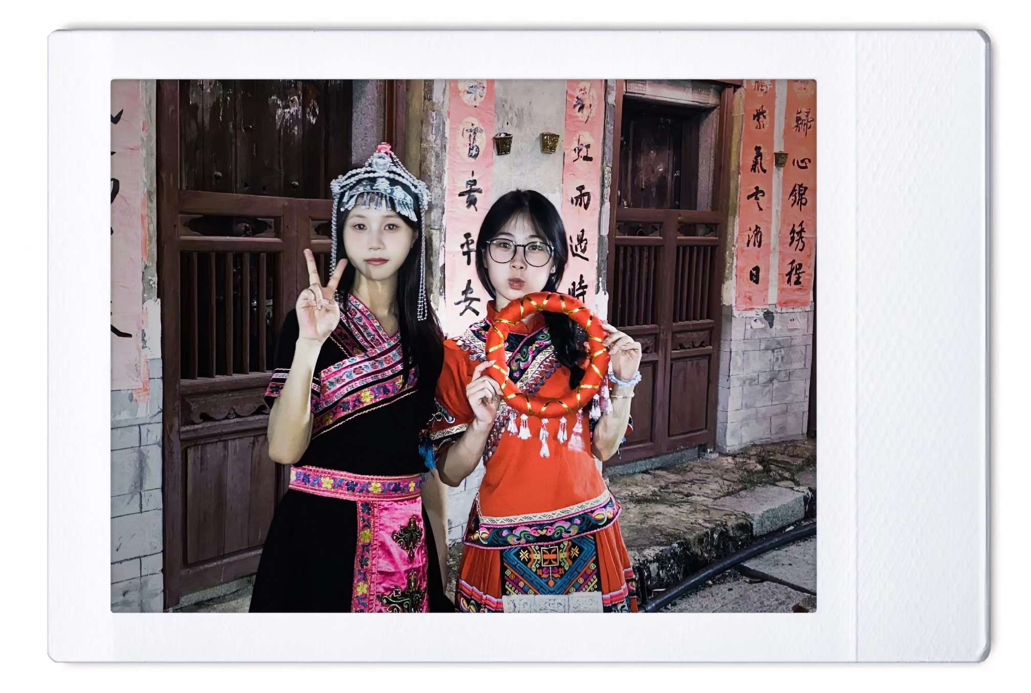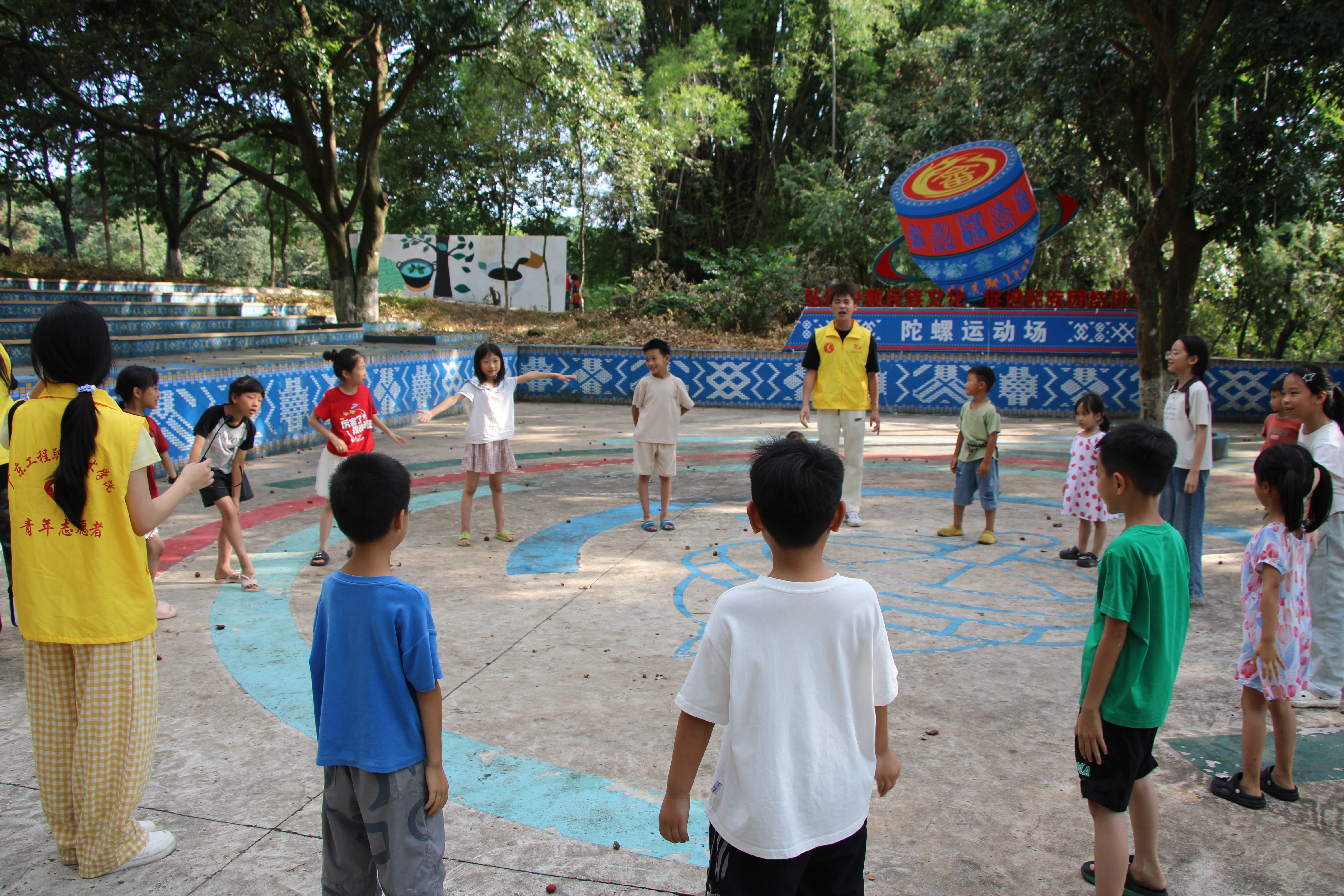 在省级文物保护单位泰华楼前,驻村第一书记晋保山向突击队讲述了这座百年围楼的营建智慧与畲族迁徙史,播下传承民族文化的种子。“陀螺一转,烦恼消散!”村支书蓝广西现场展示畲族打陀螺技艺时强调,“非遗不仅是技艺,更是滋养孩子心灵的乡土教材”。在畲乡独特的非遗文化影响下,突击队队员们纷纷穿上凤凰纹饰畲服感受当地风土人情,上场学习打陀螺技艺,沉浸式感知文化魅力,增强文化认同感。