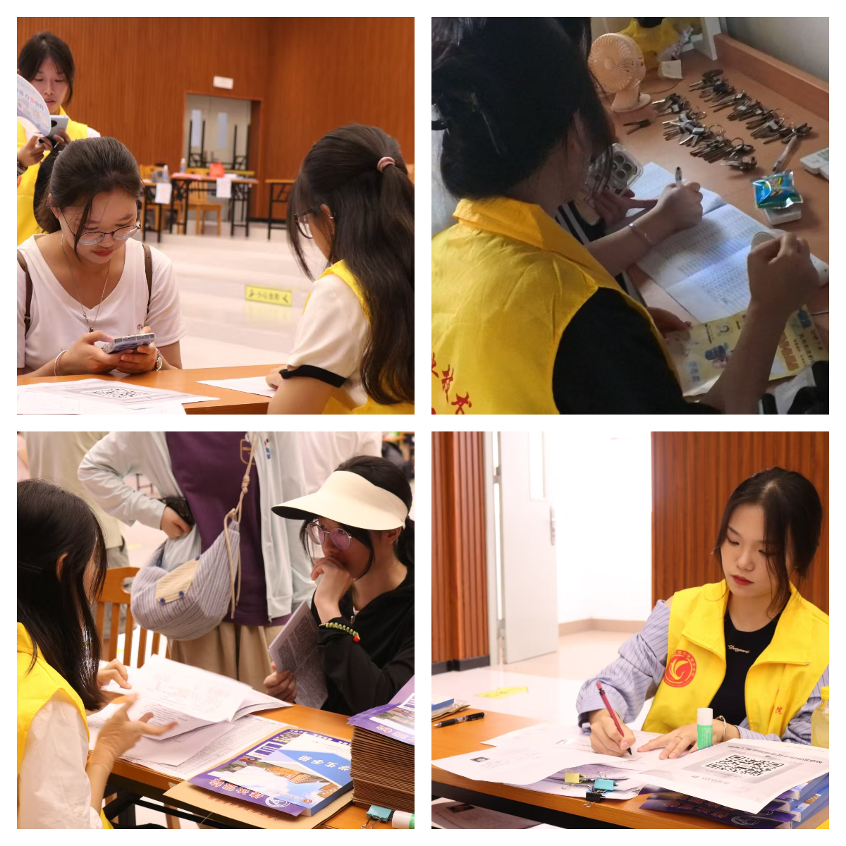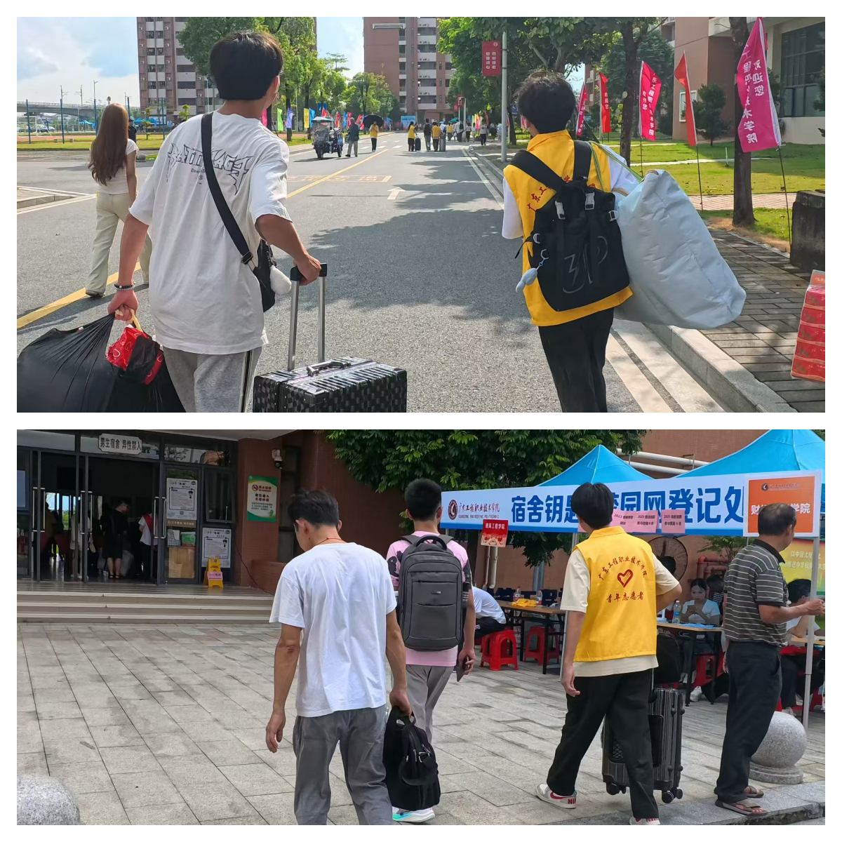 清晨七点,全体工作人员按时到位。学院在校训广场、学院门口、教学楼6栋111教室、学生宿舍等处设置引导服务台,安排工作人员和学生志愿者轮班值守,用热情、耐心为新生提供从下车引导、行李搬运、入住办理到学院报到的“全流程陪伴式”服务,极大缓解了新生和家长的奔波之忧。学校领导多次莅临现场指导工作,叮嘱迎新的各类注意事项,并提醒志愿者做好防暑、防晒工作。