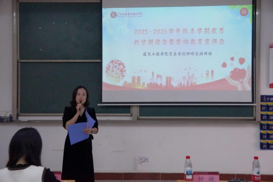 为进一步促进“感恩积分”量化管理与劳动教育深度融合,引导受资助学生培育感恩情怀、锤炼劳动精神,成长为“有技术、有温度、有担当”的新时代建筑人才,11月14日,建筑工程学院在Q1-114组织开展了感恩积分解读会暨劳动教育宣讲会。建筑工程学院党委书记钟婷,全体辅导员,获得2025-2026学年国家助学金以及获得2024-2025学年国家励志奖学金的全体同学以及学院一站式学生服务中心奖助部全体同学参会。