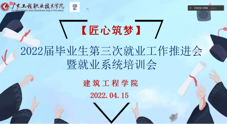 为进一步推进2022届毕业生就业工作,便于顶岗实习指导老师、毕业班辅导员等开展对毕业生就业工作及就业系统信息填报工作的指导,建筑工程学院于2022年4月15日中午通过腾讯会议召开了2022届毕业生第三次就业工作推进会暨就业系统培训会。院长王洪波、党总支书记钟婷、创业学院老师黄沛峰、全体顶岗实习指导老师、毕业班辅导员、毕业班班长及部分学生代表参加了本次会议。会议由党总支副书记晋保山主持。