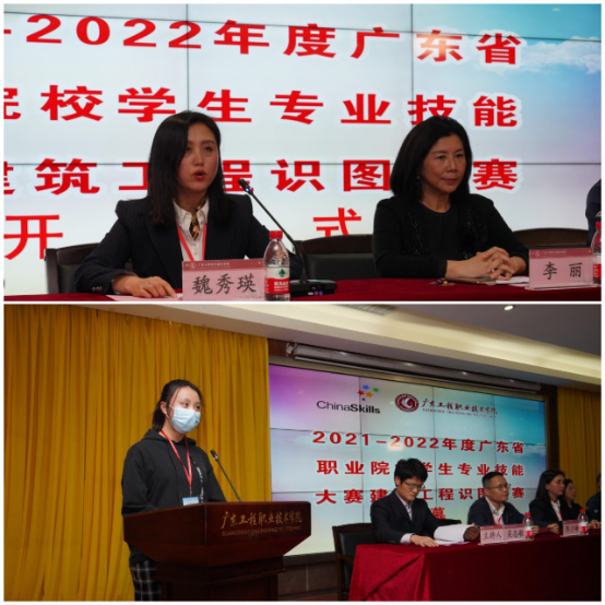 魏秀瑛对比赛注意事项作了详细说明,并对我校为比赛所做的工作给予充分肯定。裁判员代表、广东碧桂园职业学院朱冬飞宣誓,表示一定秉持公正、公平的原则,严格执裁。选手代表、我校选手季文珊宣誓,表示一定遵守比赛规则,诚信参赛。